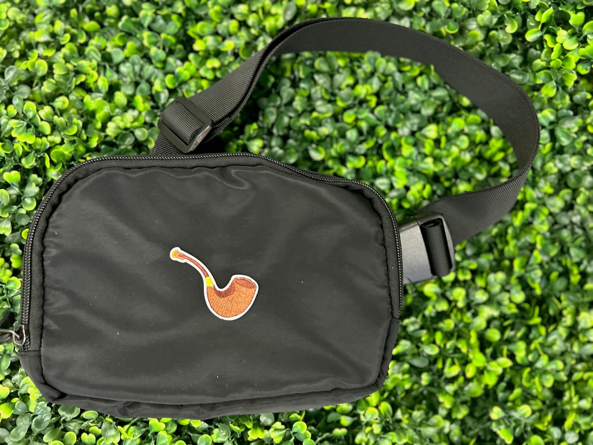 A curved brown pipe with warm gold accents and a clean white border. Adds a touch of old school charm to jackets, hats, bags, or costumes.
