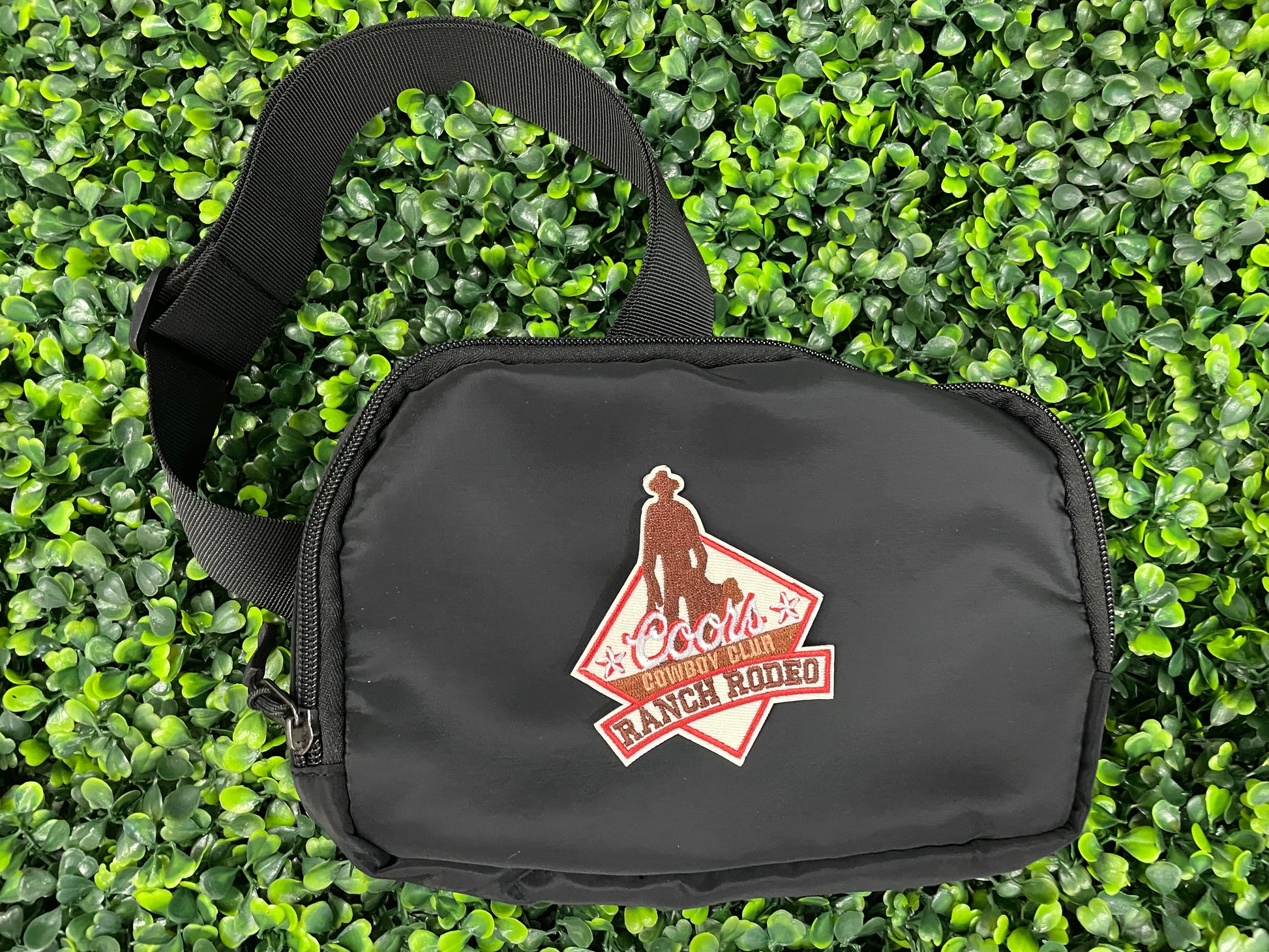 This embroidered patch features the Coors Cowboy Club Ranch Rodeo design with a cowboy silhouette, making it a great collectible or western wear accent.