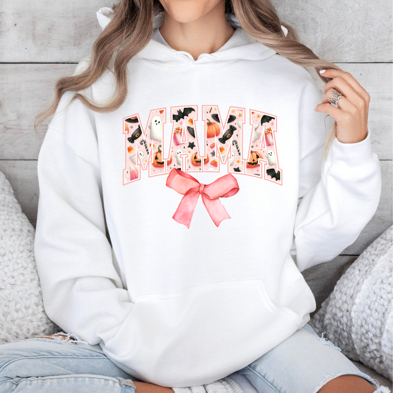 Spooky Mama, Mama Hoodie, Mama Hoodie, Halloween Mama, Pink Mama Hoodie, Pink Halloween Mama Hoodie, Halloween Mama Fashion, Pink Bow Halloween, Mama Life.