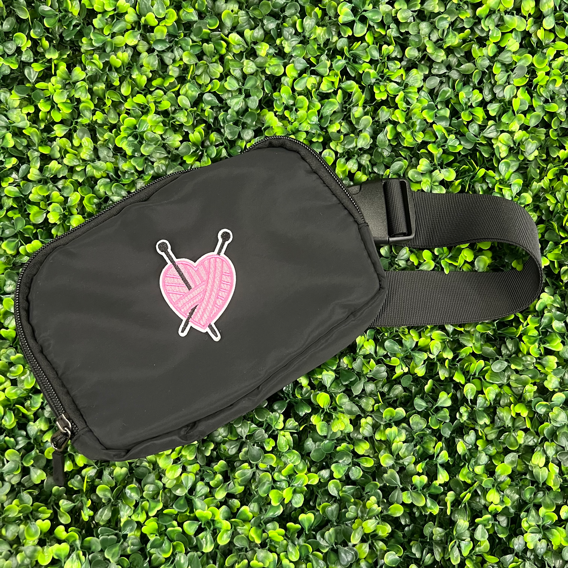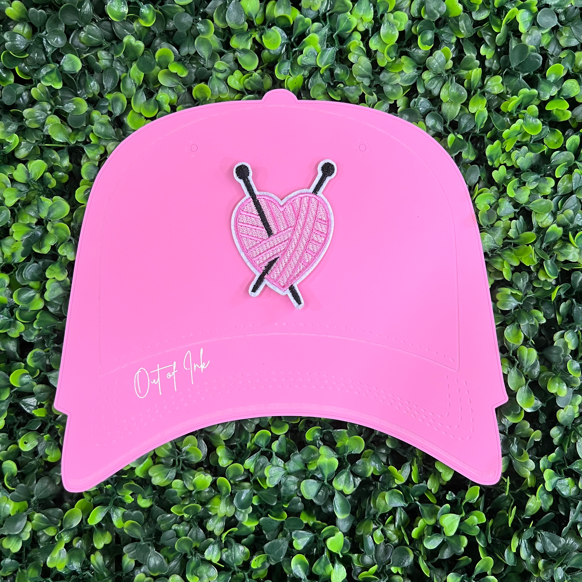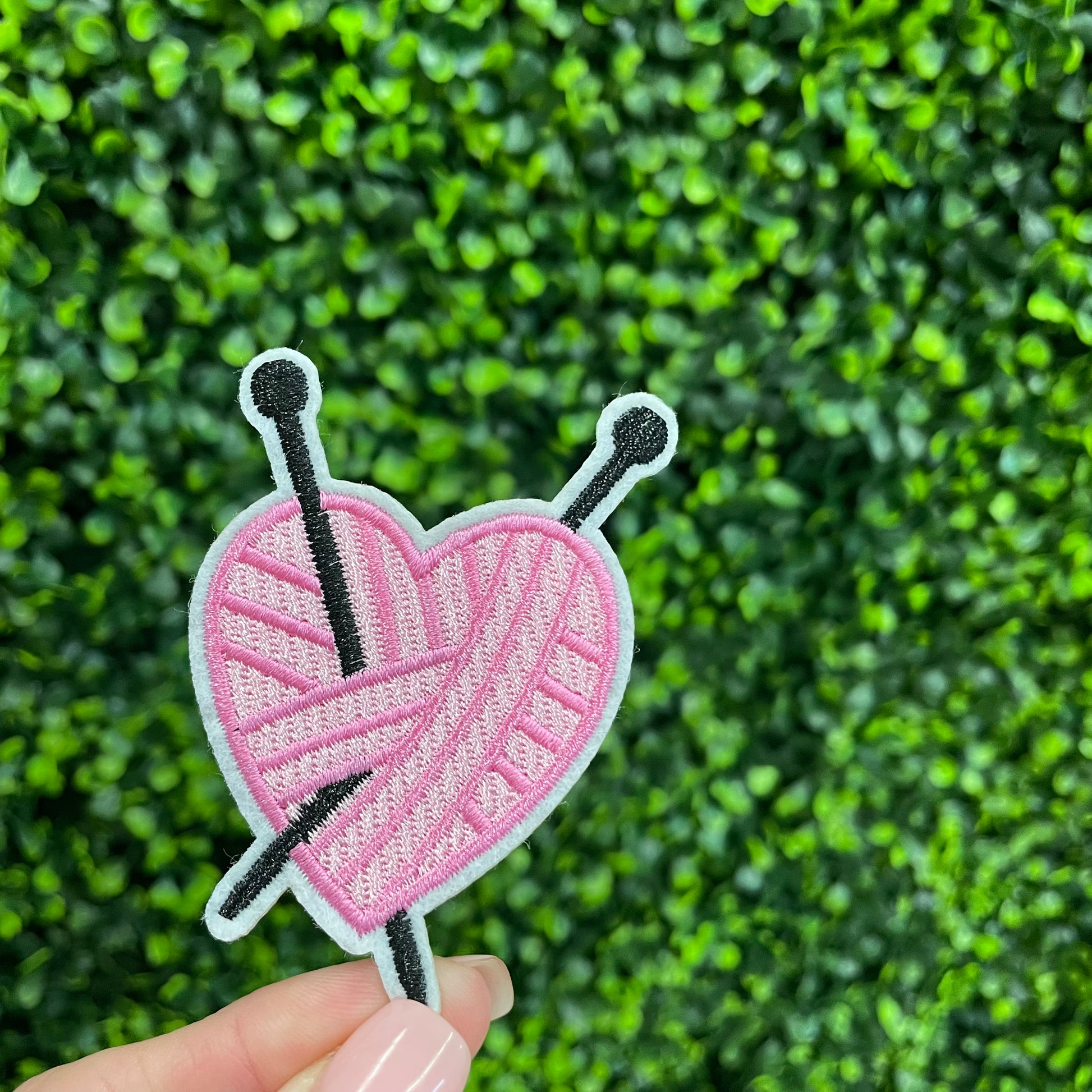 For the makers who craft with love. This embroidered patch features a pink heart made of yarn, complete with two knitting needles, making it the perfect accessory for knitters, crocheters, and crafters.