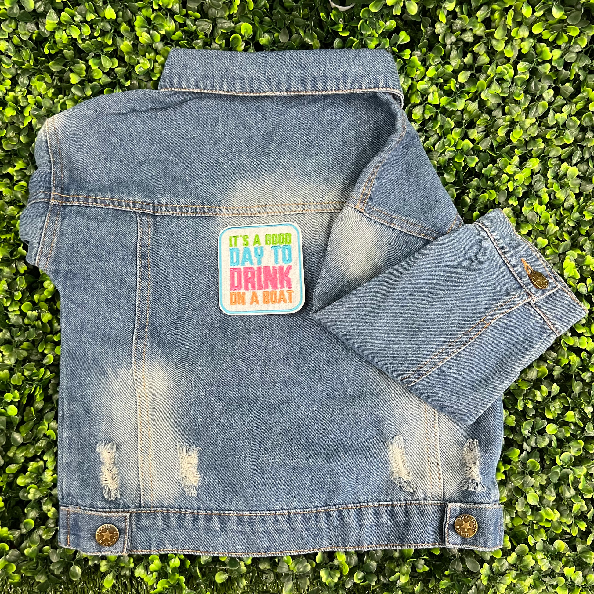 It’s a good day to drink on a boat patch, funny boat embroidered patch, nautical iron-on patch, summer lake life patch, boating humor patch, colorful embroidered patch gift for boat lovers