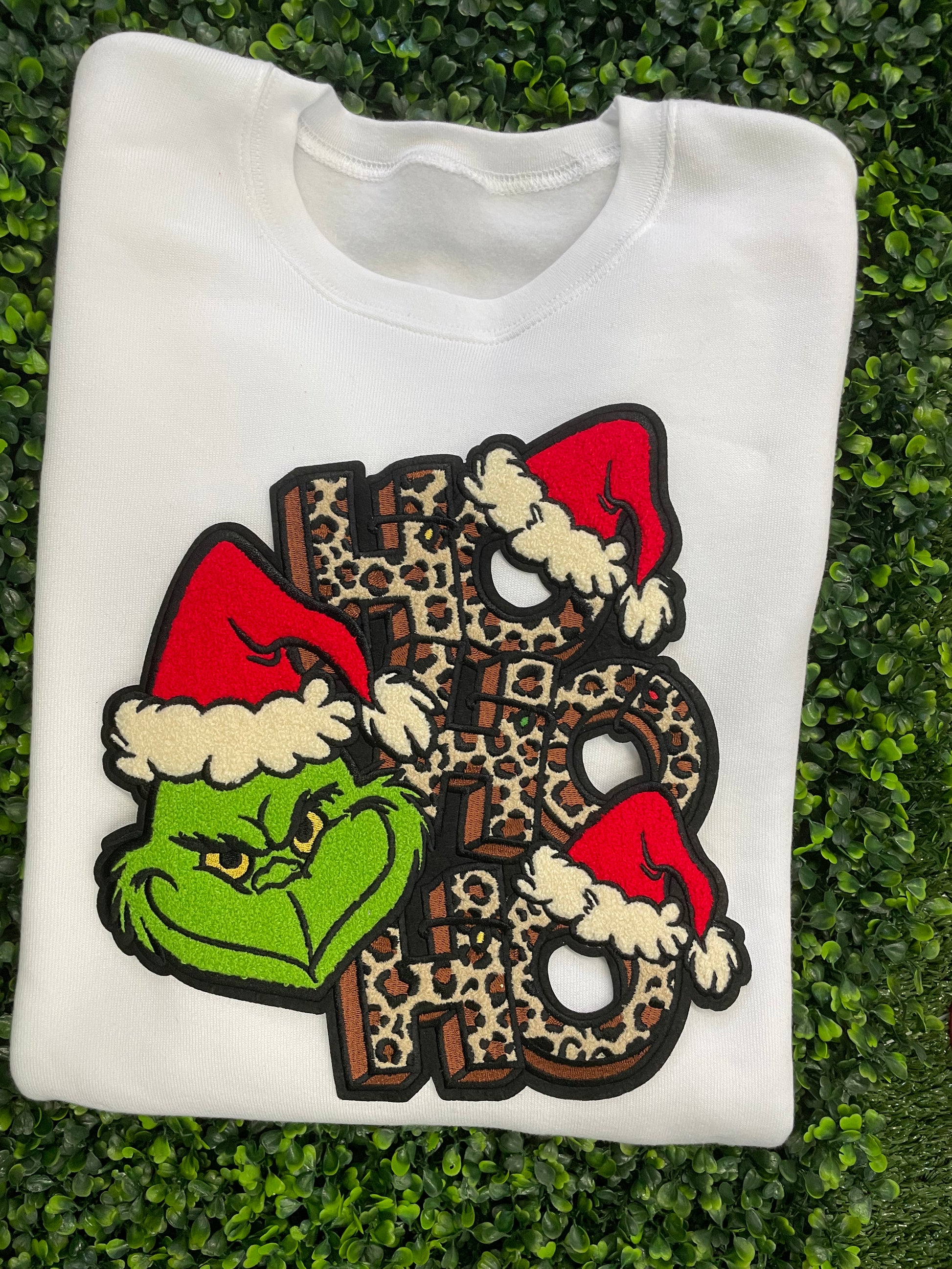Grinch Cheetah Patch, Ho Ho Ho cheetach Patch, Chenille Patch, Christmas Patch