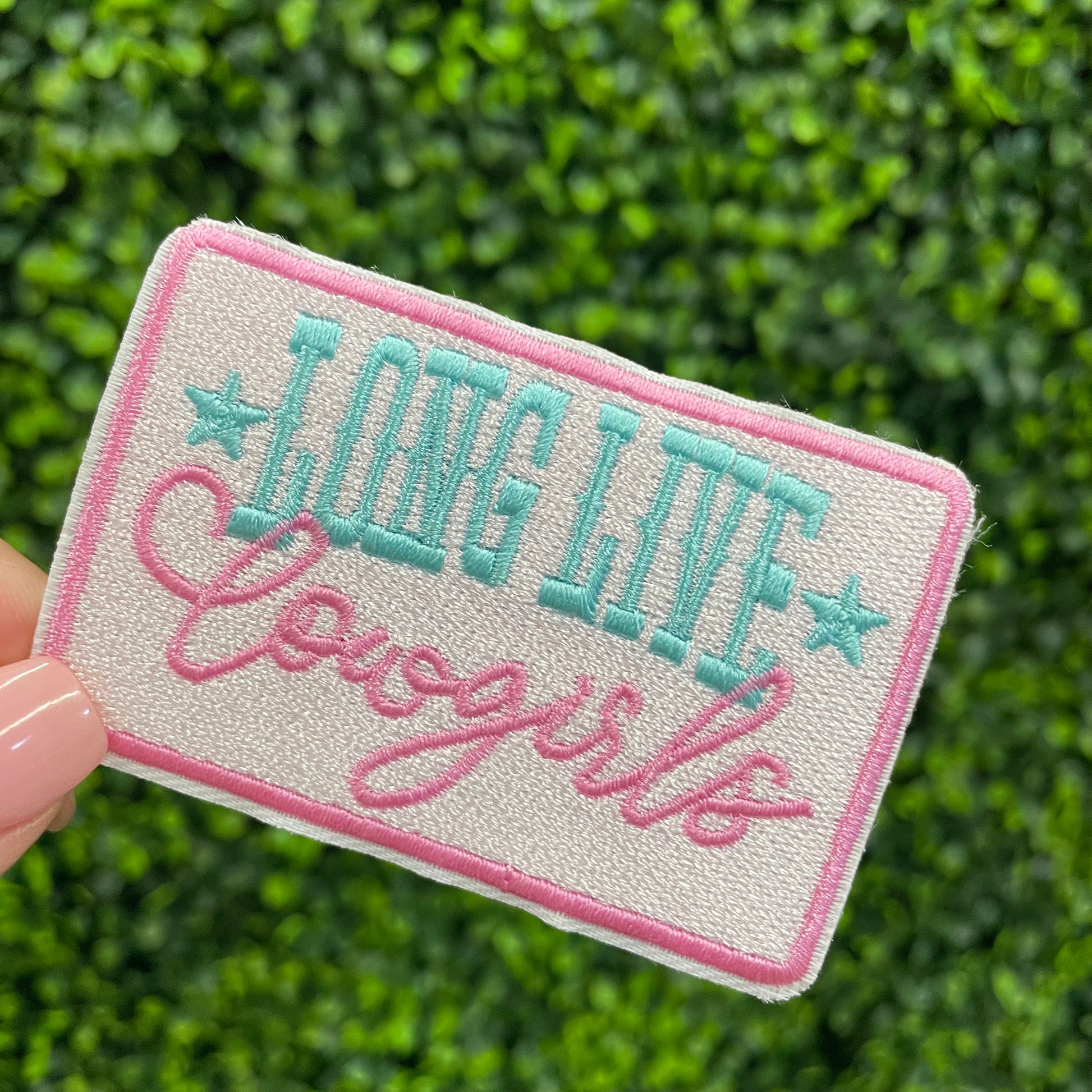 Celebrate western spirit and cowgirl charm with this gorgeous embroidered patch! Featuring the phrase “Long Live Cowgirls” in bold turquoise lettering with playful pink script and stars, this patch is the perfect mix of tough and feminine. The soft white background and pink border give it a trendy, stylish finish that pops on denim jackets, tote bags, hats, or vests.