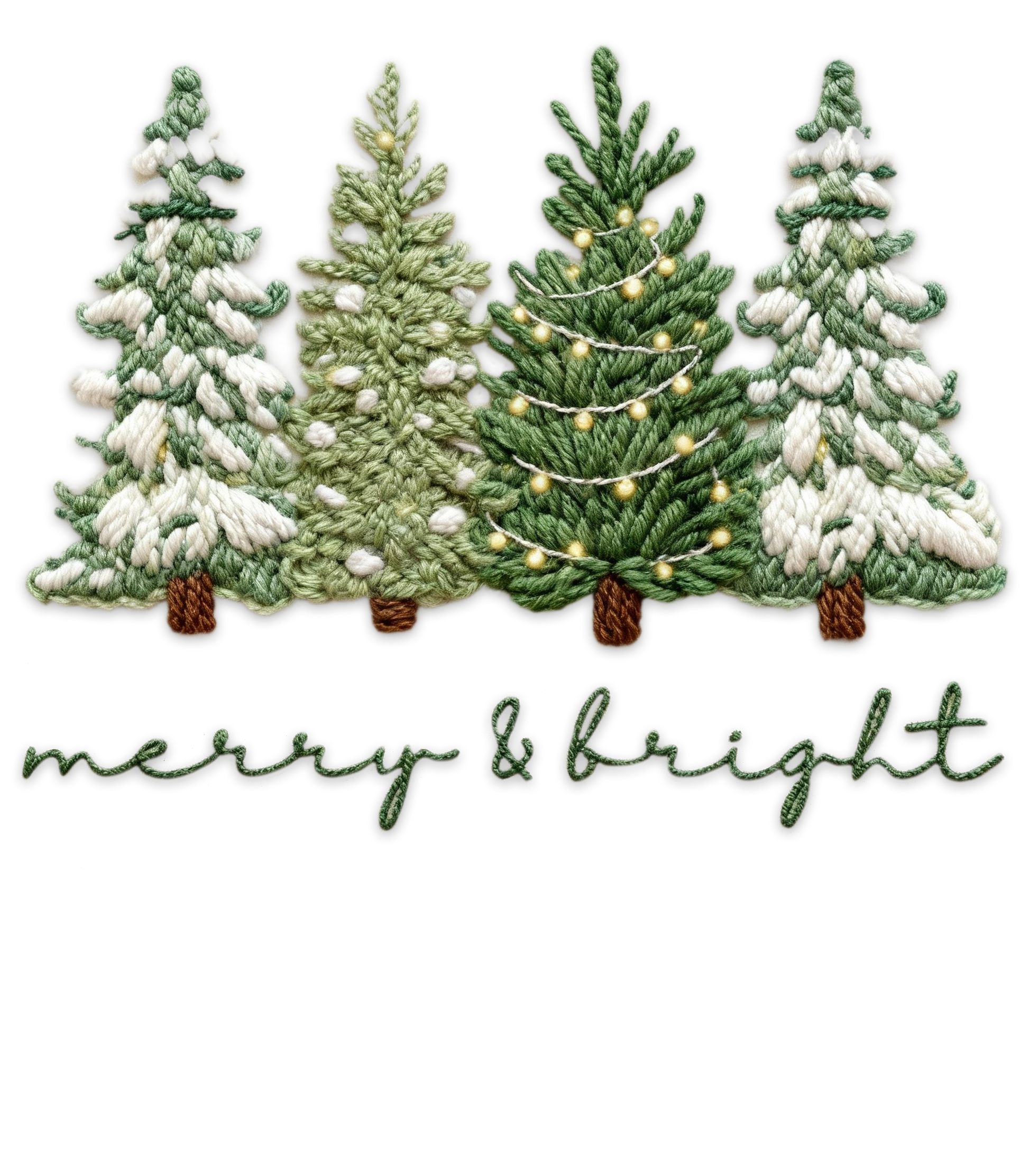 Show off your Christmas cheer with our Merry & Bright Christmas Trees Yarn Print! This joyful piece from our Christmas collection brings all the sparkle and warmth of the season to every outfit.