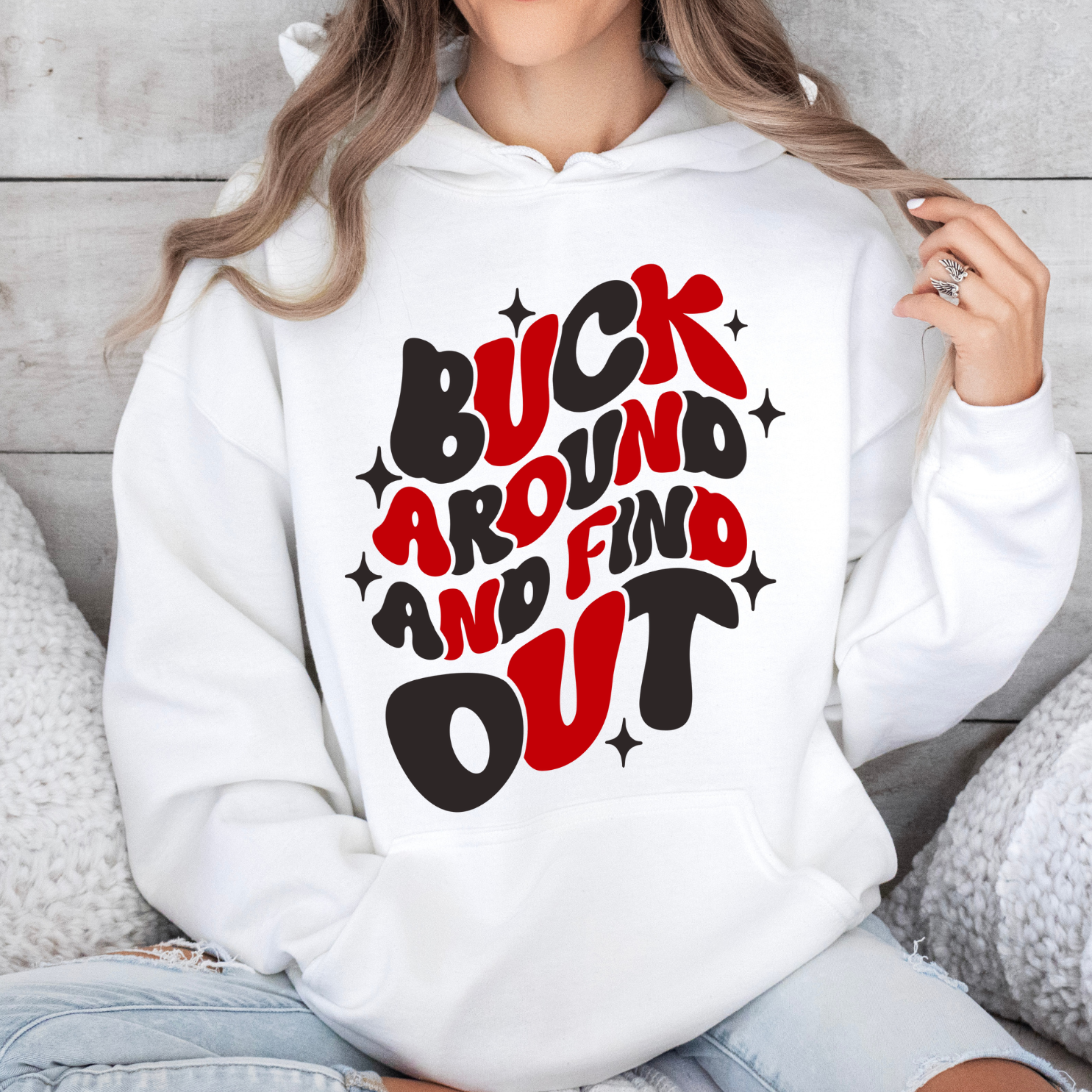 If you’re ready to rep Ohio State with some serious swagger, the "Buck Around and Find Out" Hoodie is your go-to. This isn’t just another game day Hoodie—it’s a whole vibe. Whether you’re at the game, tailgating with friends, or just out and about this Hoodie is perfect.